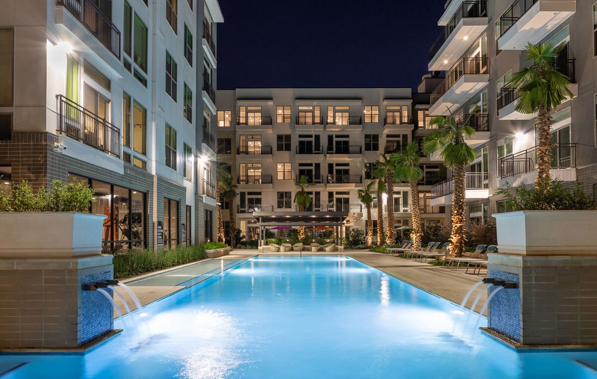 The community is designed to help residents achieve their wellness, professional, and social goals with forward-thinking amenities. Days can be spent working out in the athletic center, watching movies in the private screening room, or mingling with neighbors on the rooftop deck. For relaxation, the lushly landscaped pool provides a serene retreat. All of this and more is located in the vibrant Arts District Houston.