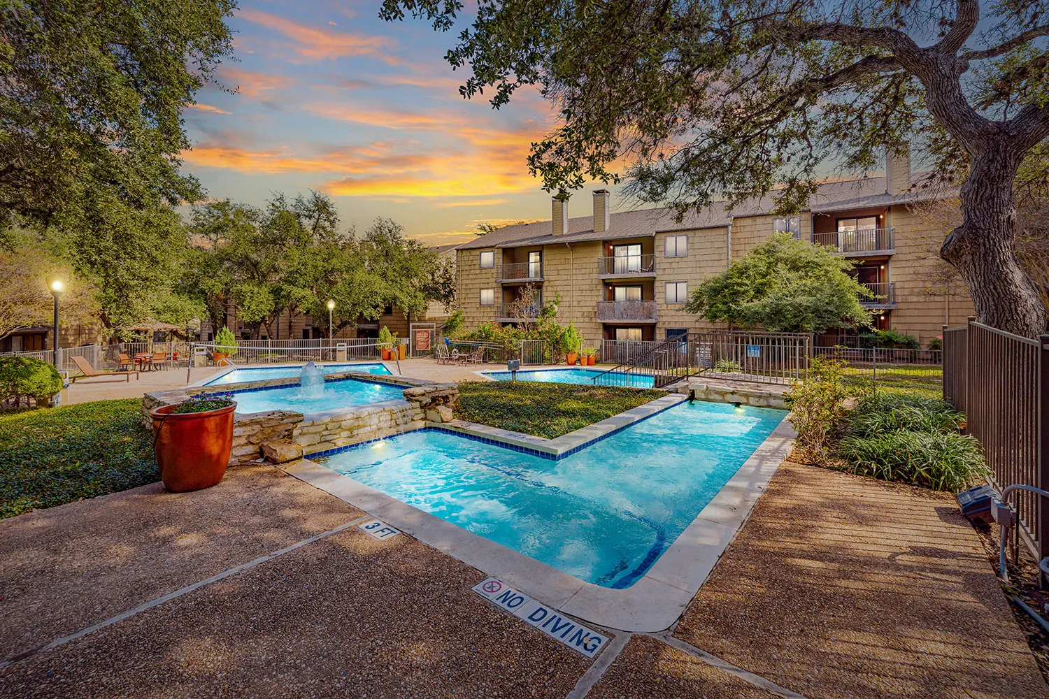 The community provides a variety of exceptional amenities, including multiple swimming pools, a 24-hour fitness center, and a picnic area with BBQ grills. Residents can also take advantage of the clubhouse, which features a business center and a coffee/tea bar. Additional conveniences include covered parking, an on-site laundry facility, complimentary Wi-Fi in all common areas, and a dedicated maintenance team.