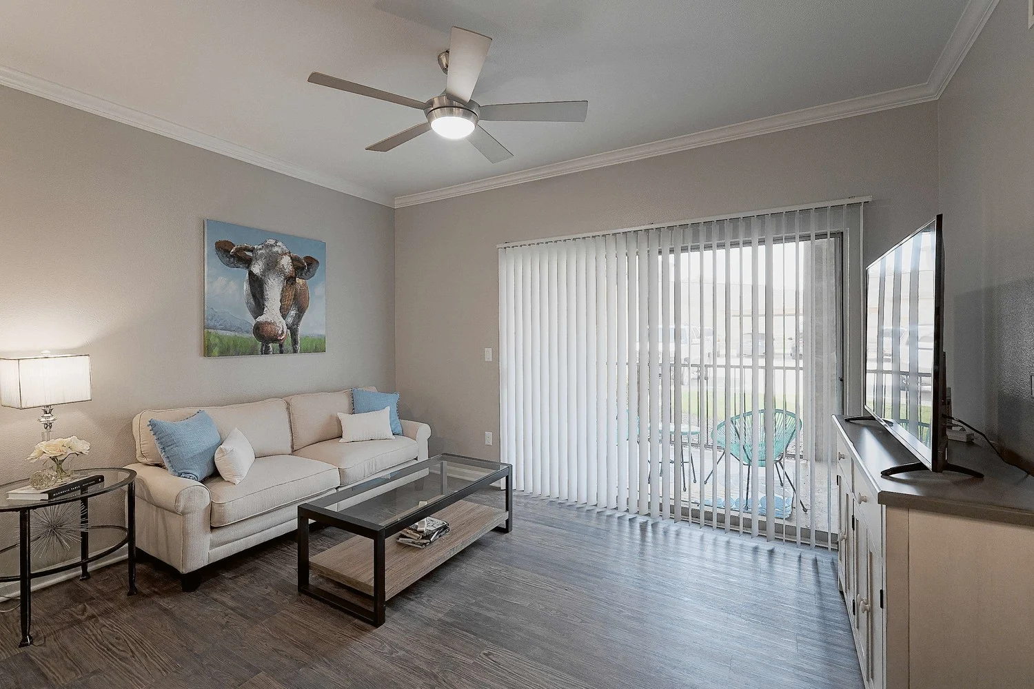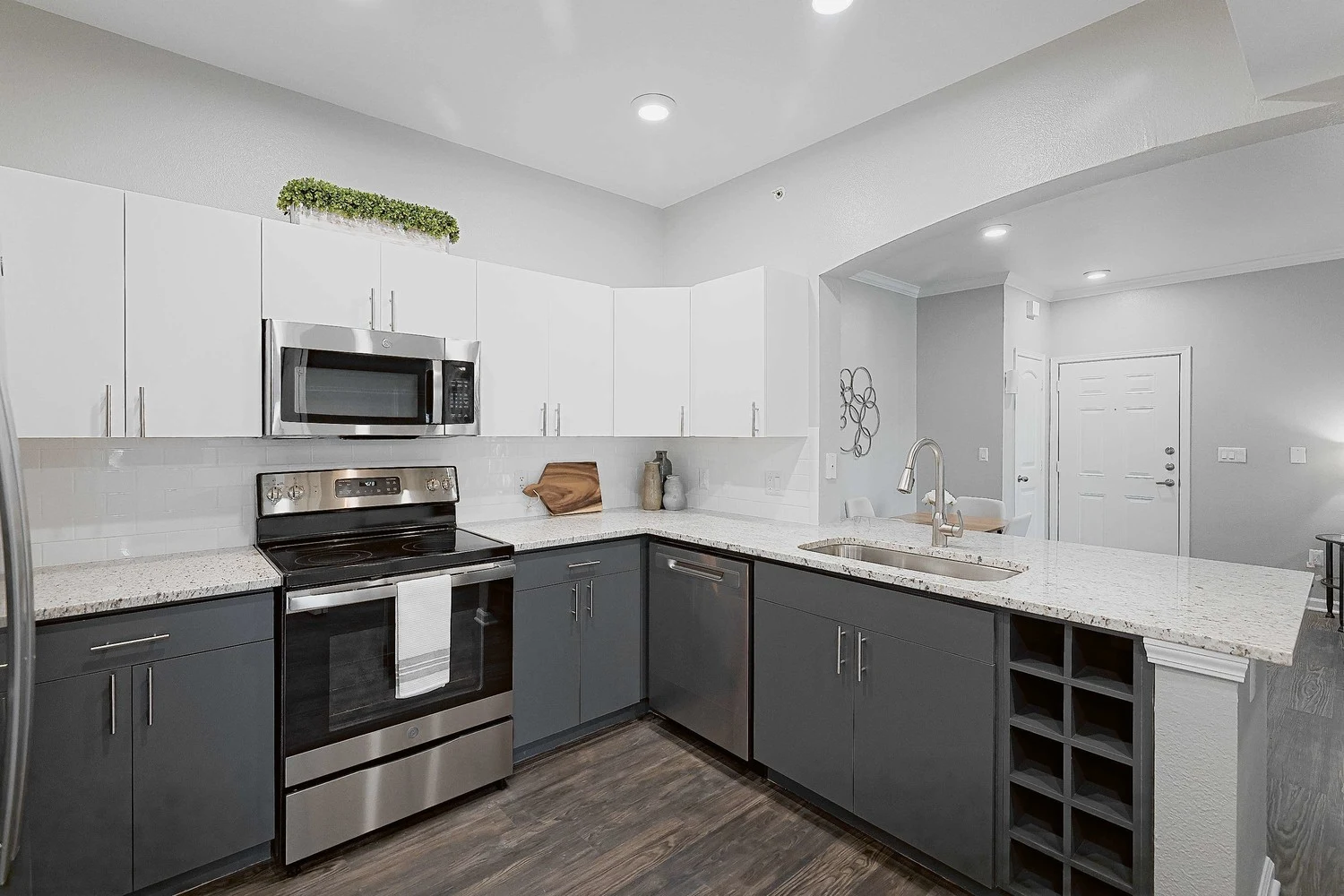 Dry Creek Ranch Apartments offers a welcoming community with beautifully designed one, two, and three-bedroom residences. Each apartment features a fully equipped kitchen, spacious living areas, and a private patio or balcony, creating an ideal space for both relaxation and entertainment. Select units include upgraded finishes such as granite countertops, stainless steel appliances, cozy fireplaces, and farmhouse kitchen sinks.