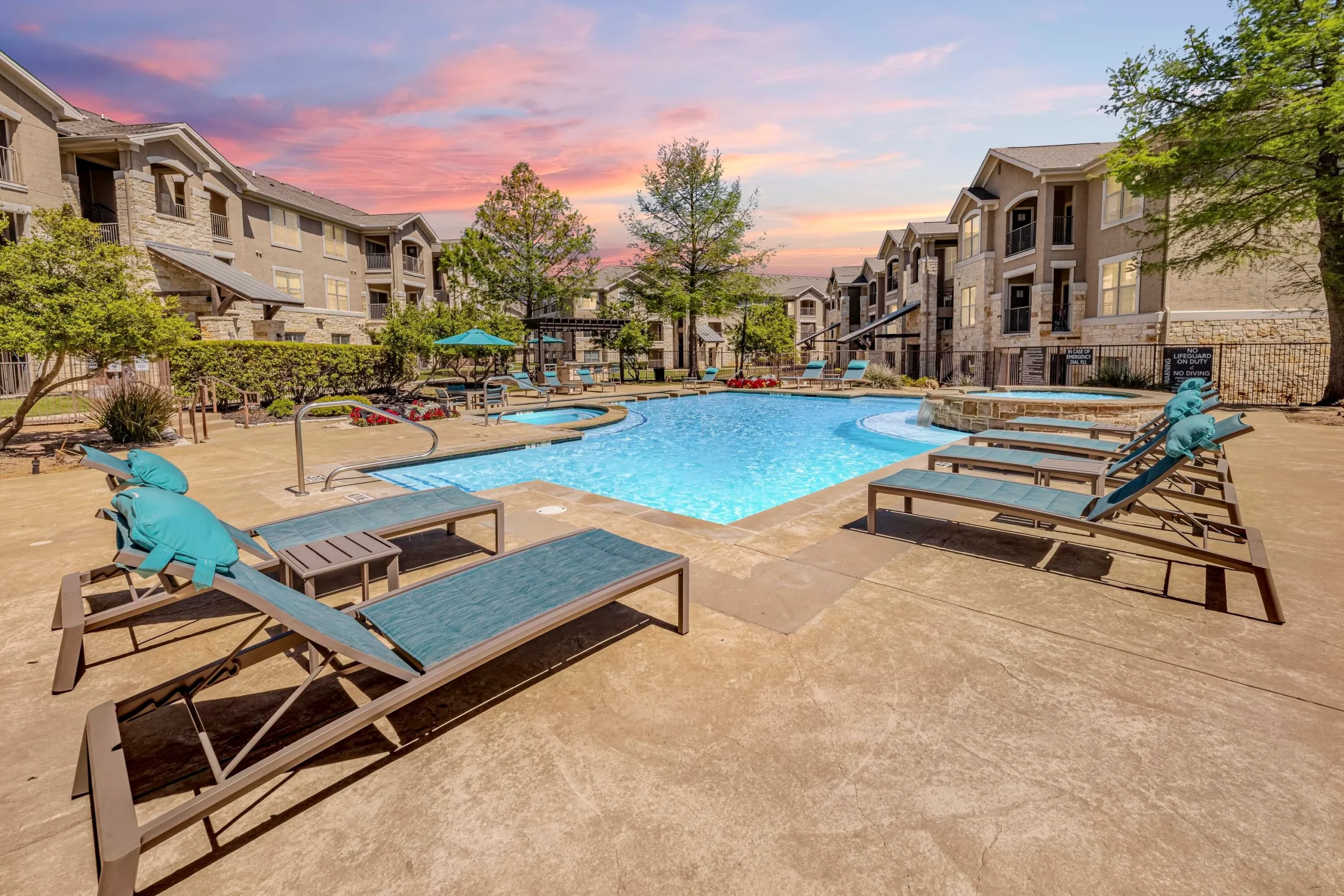 Residents have access to exceptional amenities, including a resort-style swimming pool, an outdoor firepit area, an on-site dog park, and an outdoor kitchen. The clubhouse features a 24-hour fitness center, a theatre room, a basketball court, and a billiards room. For added convenience, the community provides an on-site laundry facility, covered parking, a car wash station, valet trash service, and free movie rentals. Prospective residents can explore available floorplans through a walkthrough video tour or schedule an in-person visit with the leasing team to experience Dry Creek Ranch Apartments firsthand.