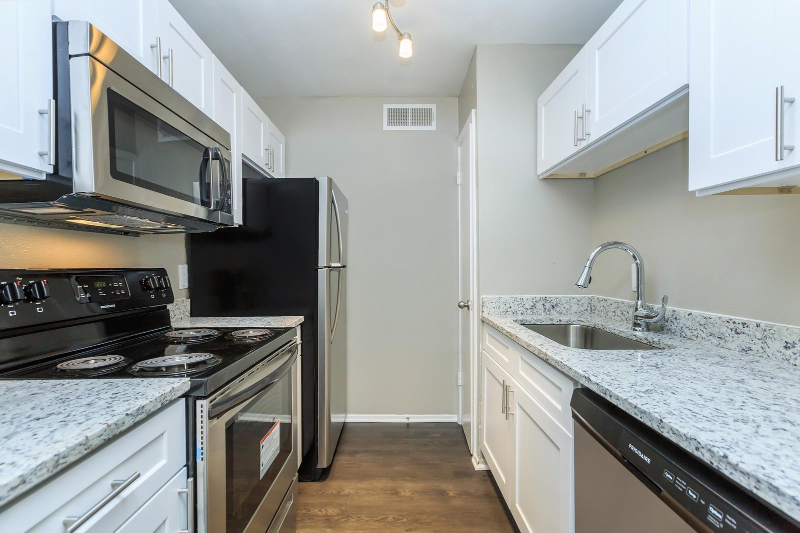 The community provides one- and two-bedroom apartments, available in both classic and remodeled floor plan options. Upgraded homes feature granite countertops, faux wood flooring, upgraded fixtures, 2-inch faux wood blinds, and stainless steel or black appliances. Each apartment includes an all-electric kitchen with a pantry and dishwasher, ceiling fans, central air and heating, walk-in closets, and a private balcony or patio.