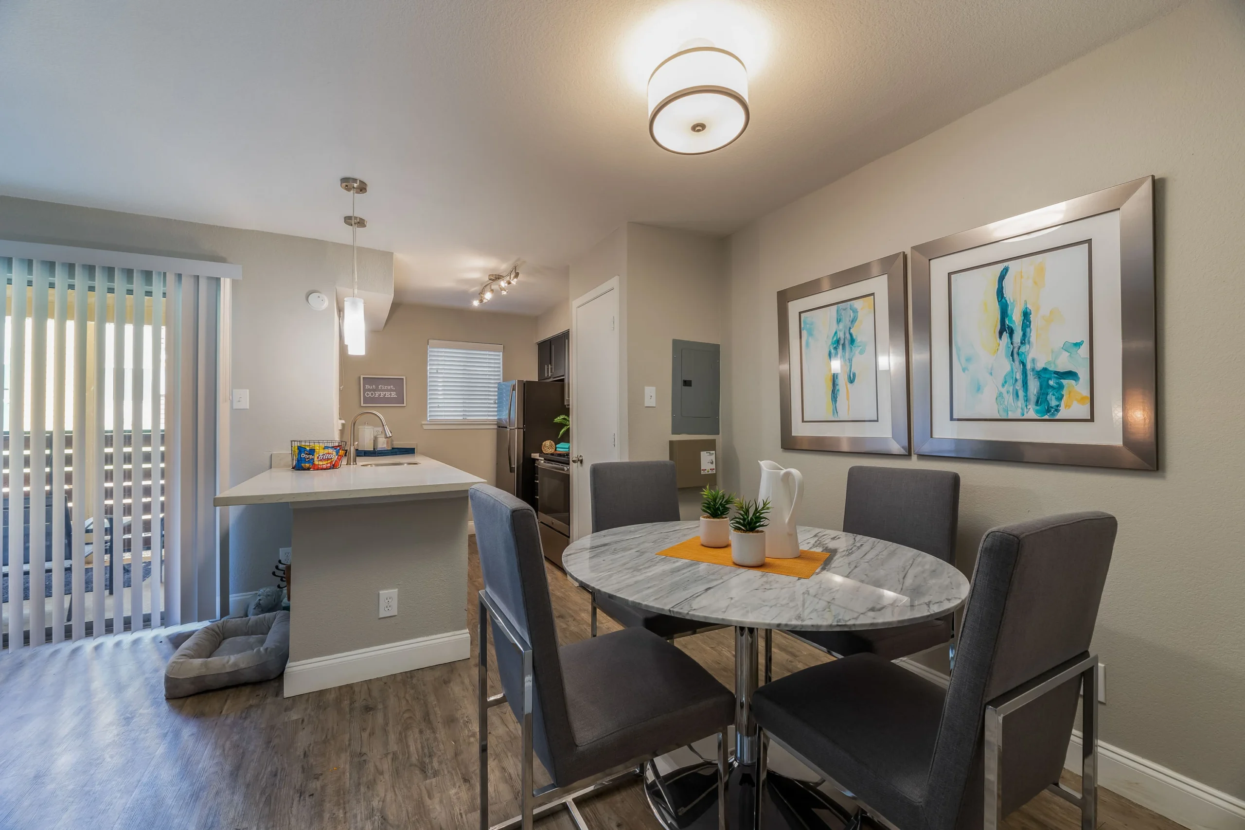 Flintridge Apartment Homes in Arlington, Texas, offers modern living with stylish one- and two-bedroom apartments. These newly renovated homes feature open layouts, stone countertops, stainless steel appliances, wood-style flooring, and navy cabinetry, combining chic design with practical functionality.
