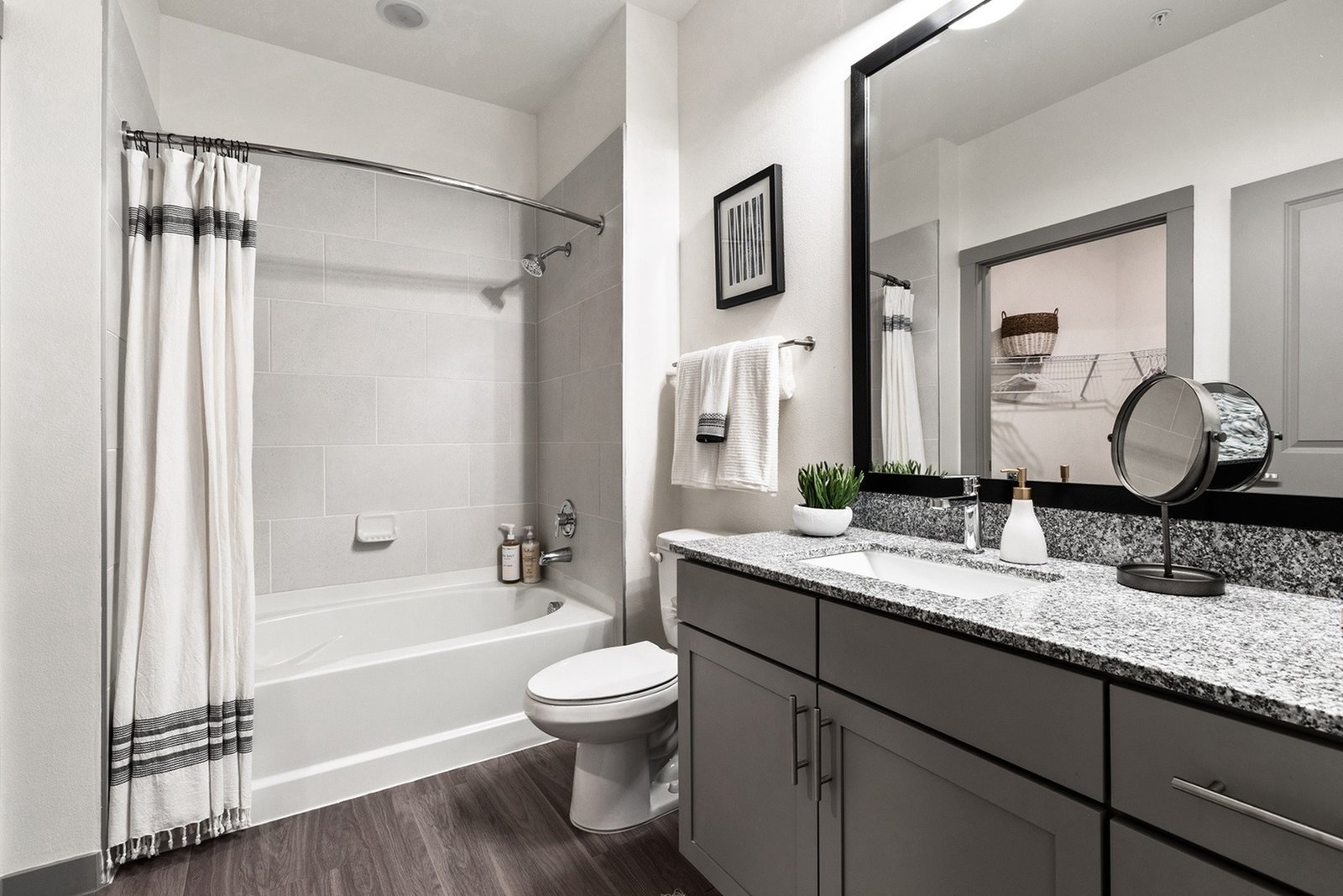 Residents will enjoy resort-style amenities and brand-new apartments that redefine comfort and convenience. Each home features high ceilings, wood-style flooring, generous closet space, and modern conveniences such as washer/dryer sets. The kitchens are thoughtfully designed with designer backsplashes, granite countertops, stainless-steel appliances, and side-by-side refrigerators.