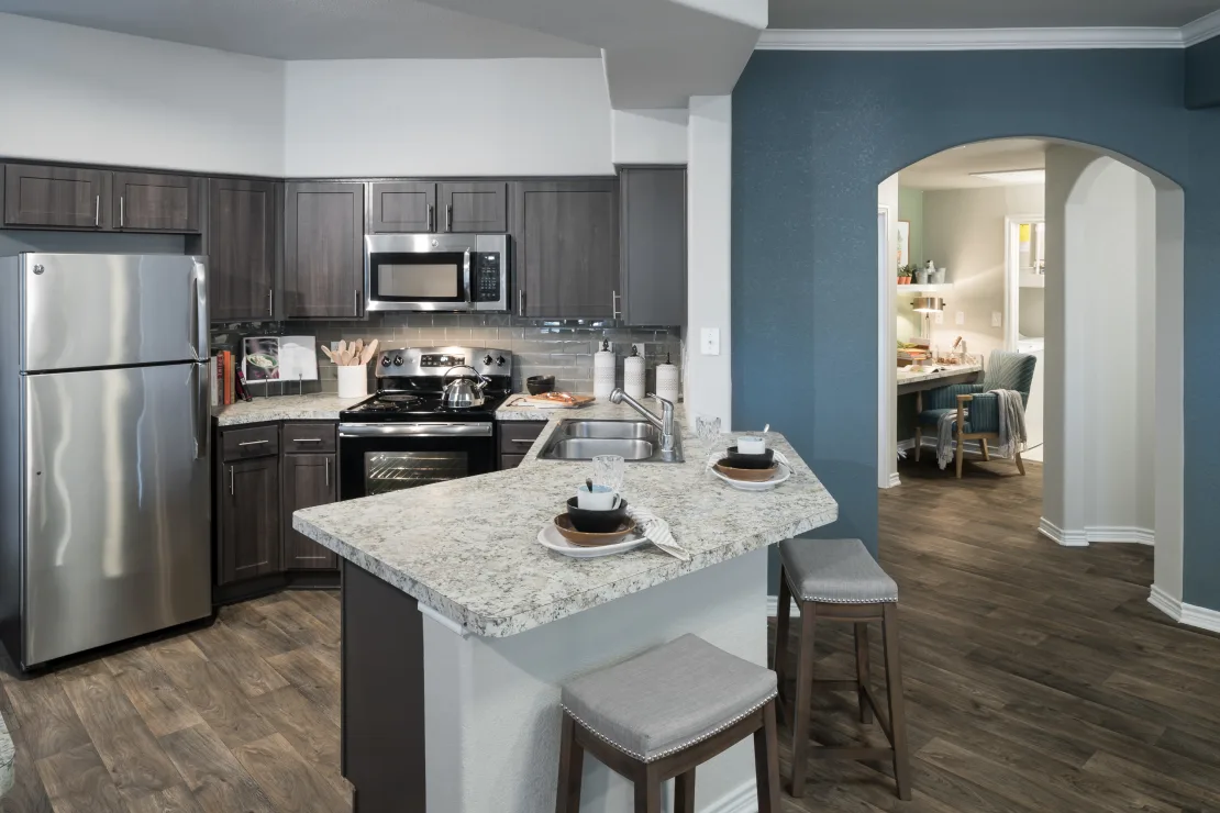 McDermott Place redefines luxury living with thoughtfully designed one-, two-, and three-bedroom apartments in Plano, TX. Each residence is crafted with comfort, relaxation, and convenience in mind. State-of-the-art kitchens feature stainless steel appliances, built-in microwaves, and inviting breakfast nooks. The wood-style flooring leads to bright, sunlit living rooms with bay windows and the option for a cozy fireplace. High ceilings and crown moldings add a touch of sophistication, while the master bedroom offers a serene retreat at the end of the day.