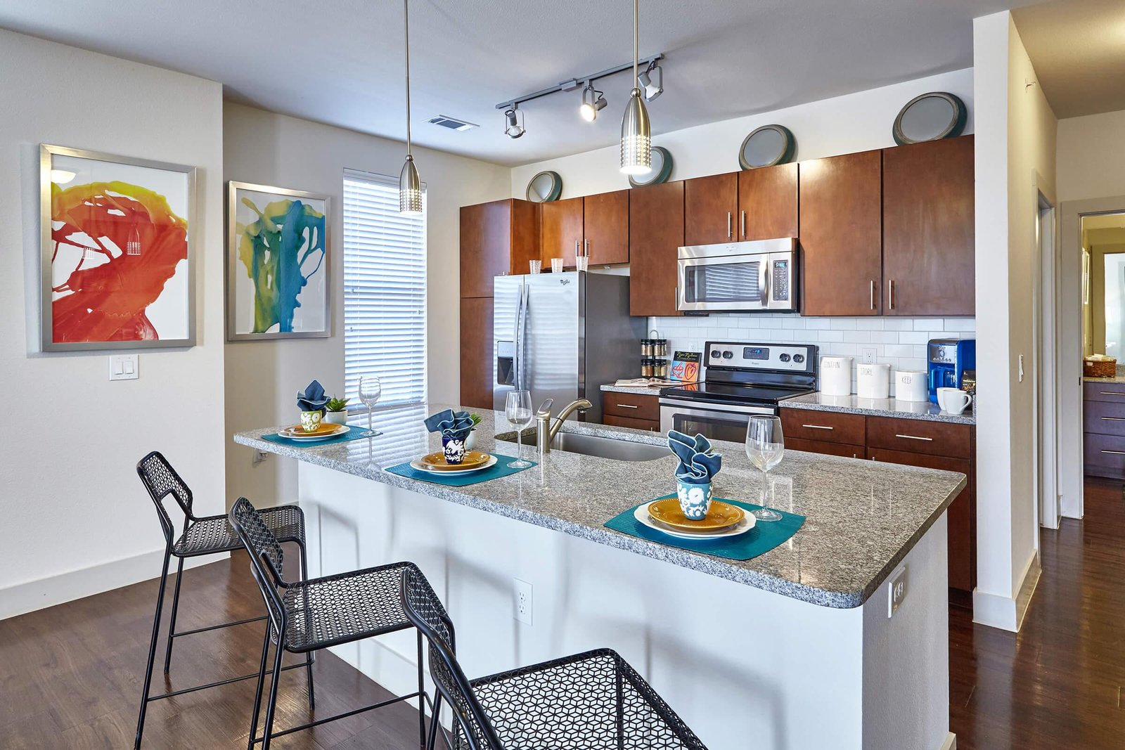 The thoughtfully designed apartment homes feature kitchens with granite countertops, stainless steel appliances, and ample cabinet space. Living areas are bathed in natural light and include outdoor patios, perfect for enjoying the fresh air. Spacious bedrooms with large walk-in closets provide ample storage for every season, while select homes also include garden tubs and full-size washers and dryers for added convenience.