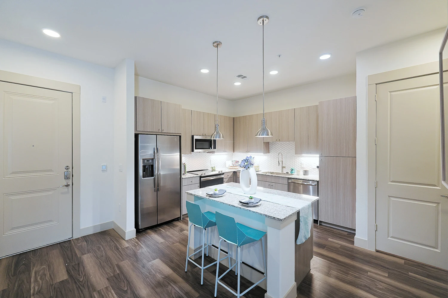 The Drake on Summit Apartments redefines luxury living in Fort Worth, Texas, with thoughtfully designed spaces and exclusive community amenities. This upscale community offers exceptional studio, one, and two-bedroom apartments, featuring up to 1,350 square feet of living space and a range of premium interior touches. Residents enjoy open-concept layouts, stained concrete or plank flooring, 10-foot or higher ceilings, Wi-Fi-enabled smart thermostats, USB outlets, smart dimmer switches, washer/dryer connections, and expansive terraces, balconies, or private yards. Gourmet kitchens are equipped with granite countertops, undermount sinks, stainless steel appliances, and double-door refrigerators, ensuring a chef-worthy experience. Select units include custom Elfa closets, Wi-Fi-enabled speakers, in-unit washer/dryers, and luxury spa shower/tub combinations with rain showerheads.