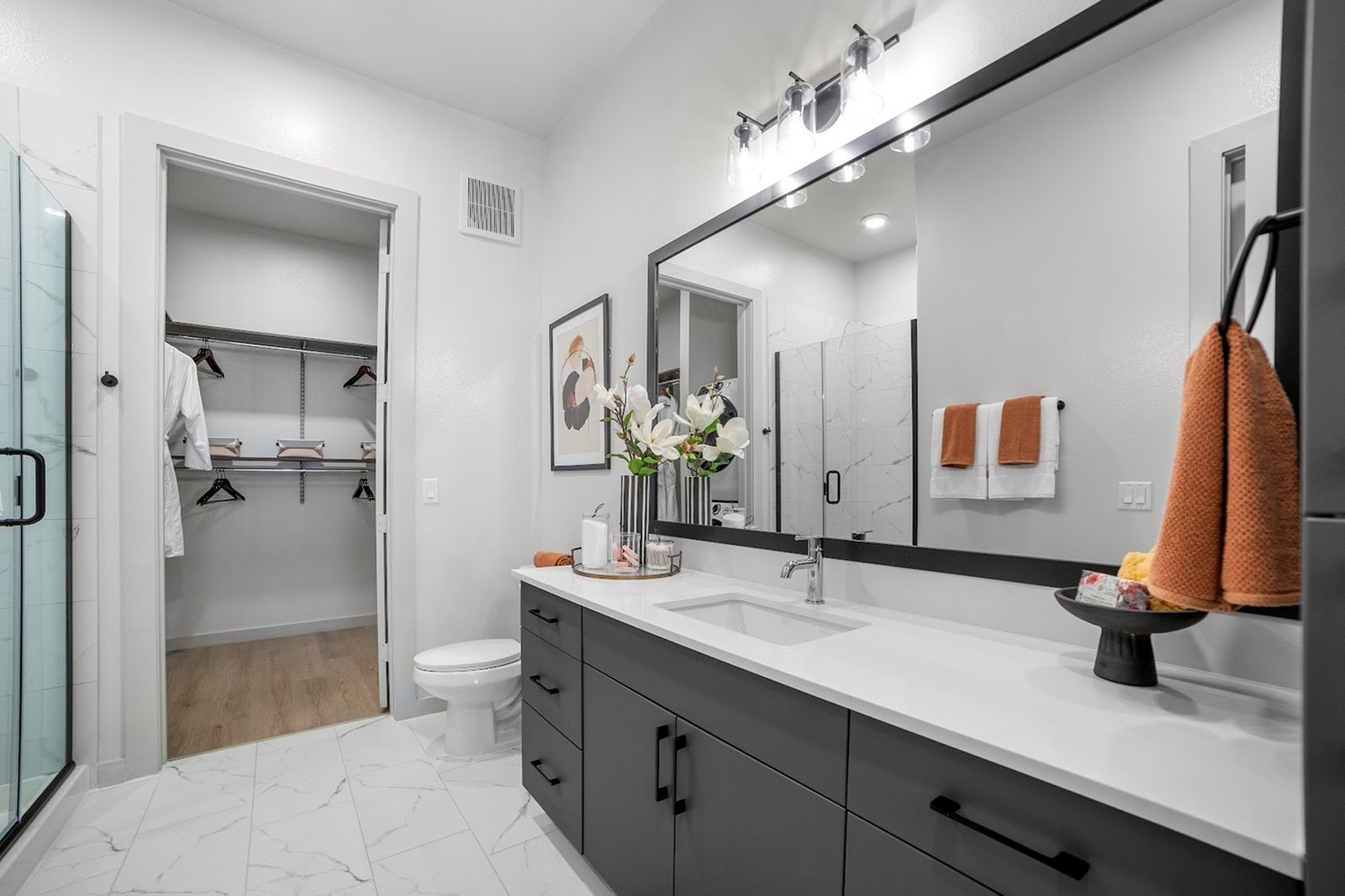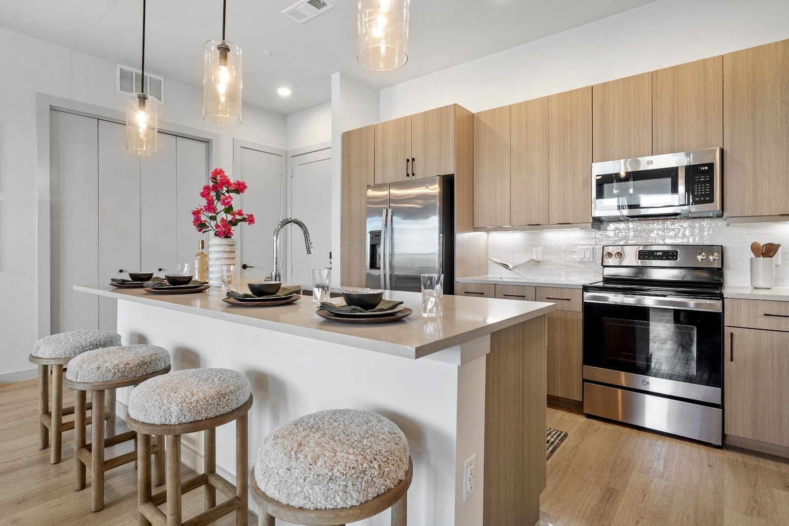 Each apartment home is equipped with stainless steel appliances, a washer and dryer, a smart thermostat, and Smartlock technology. Residents can easily manage maintenance requests and rent payments through an online portal. Large closets feature adjustable shelving for personalized organization, while private patios provide a space to relax. The 24/7 package room ensures convenient access to deliveries.