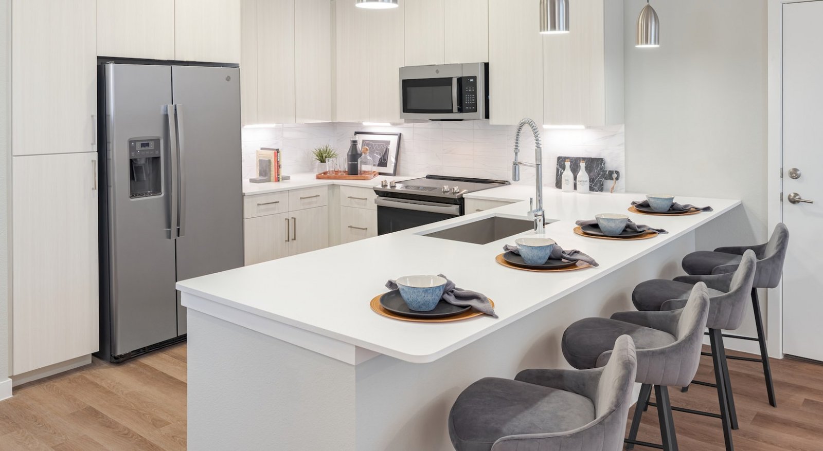 The Exchange is a modern industrial retreat with direct access to the best parts of Houston via the nearby Burnett Transit Center train station and convenient highway connections. Featuring a sky lounge with stunning city views and a fully enclosed interior courtyard and pool area, The Exchange offers an elevated urban living experience. Residents can enjoy city living while staying truly connected.