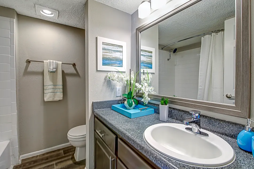 Residents at The Mission at Medical Apartments enjoy a wealth of amenities, including three resort-style swimming pools, an on-site dog park, and a 24-hour athletic club. Additional conveniences include a business center with internet access, barbecue stations with picnic tables, a soccer field, a children’s playground, clothes care centers, a package receiving center, 24-hour emergency maintenance, and covered parking.